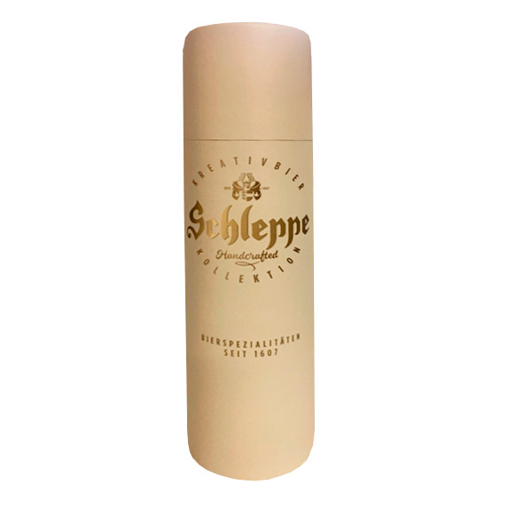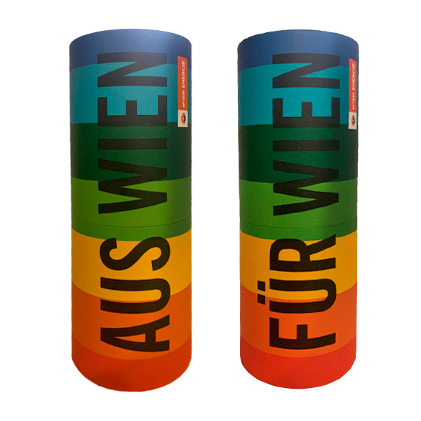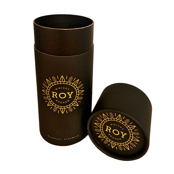3-teilige Rundverpackung auf Kraftpapier, bedruckt + Lack. Ober- und Unterteil sind so konzipiert, dass man 2 Texte auf einer Schatulle hat. |