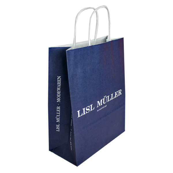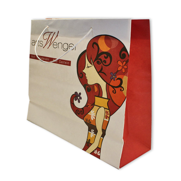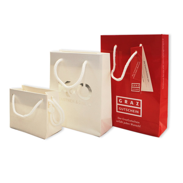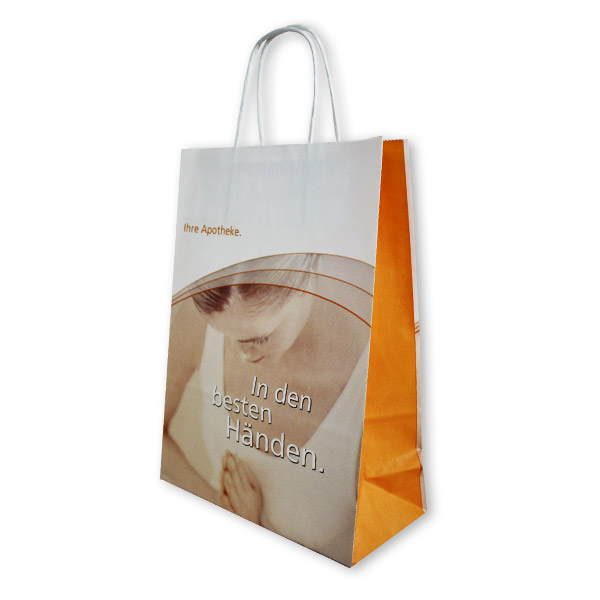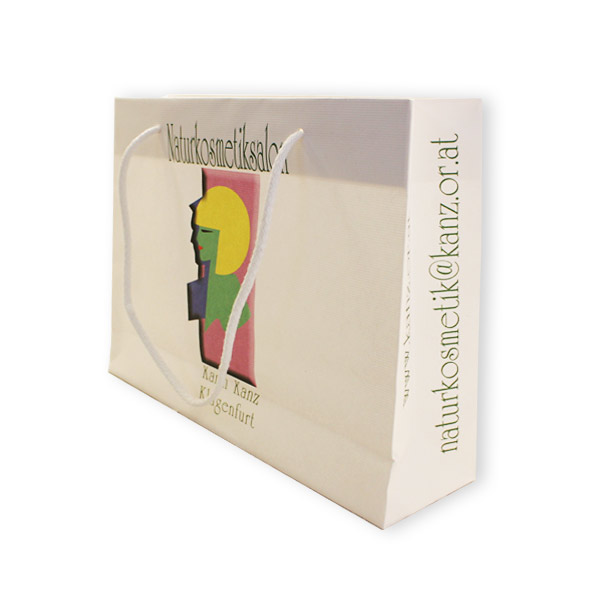 Papiertragetaschen mit weißer gedrehter Papierkordel / 4-färbig Flexodruck |