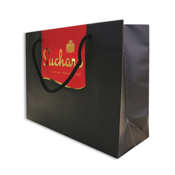 Luxustragetaschen mit Baumwoll-kordeln / Offsetdruck plus Heißfolienprägung und separater Etikette zum beschriften |